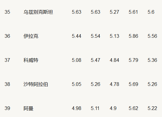 5. 2017年雅思A類(lèi)考試成績(jì)TOP 40的國家或地區